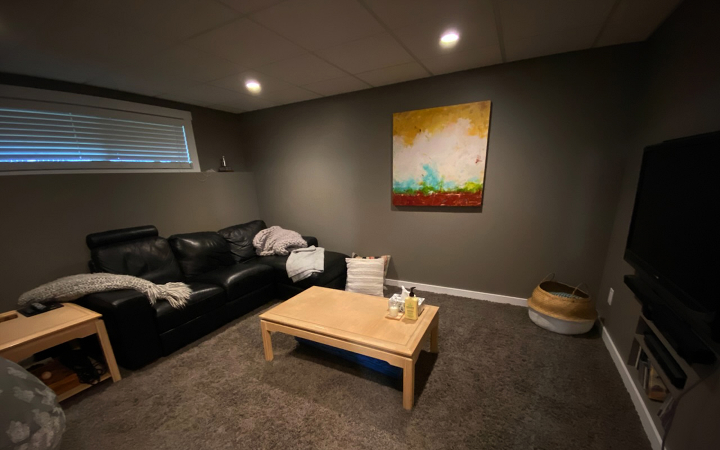 One bedroom plus office with a possibility of a second bedroom. Full bathroom with shower and tub plus half bath on main floor. TV room and laundry in basement.