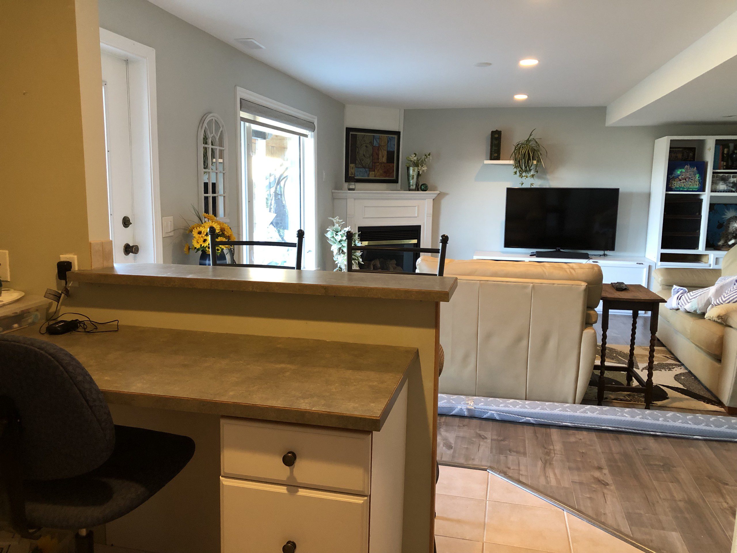 The owners of the house live on the main floor of the house and the room is in the basement area.